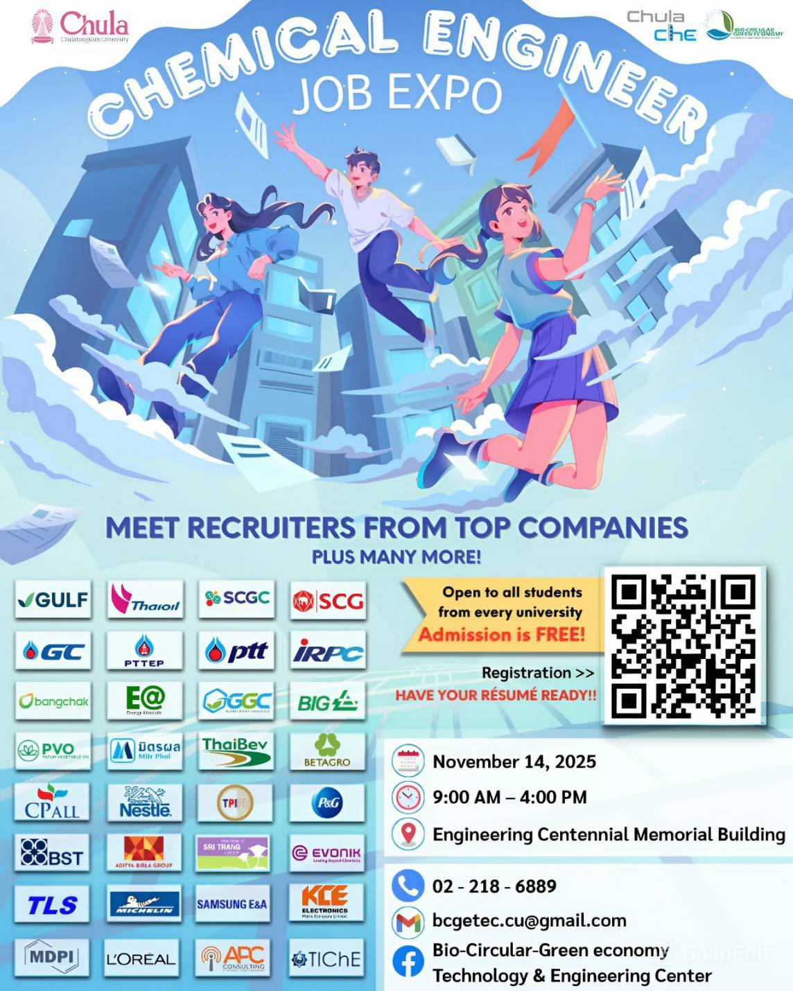 #CHEJobExpo #ChulaEngineering #BCGeTEC #CareerFair #เข้าฟรี #เปิดทุกมหาวิทยาลัย #เตรียมเรซูเม่มาให้พร้อม