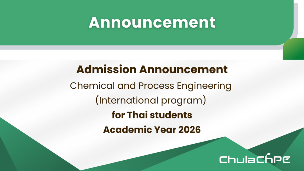 Bachelor of Engineering Program in Chemical and Process Engineering (International Program) will open for application for Thai Students (ONLINE APPLICATION ONLY at https://intranet.chem.eng.chula.ac.th/chpe/data_apply.php) as follows: