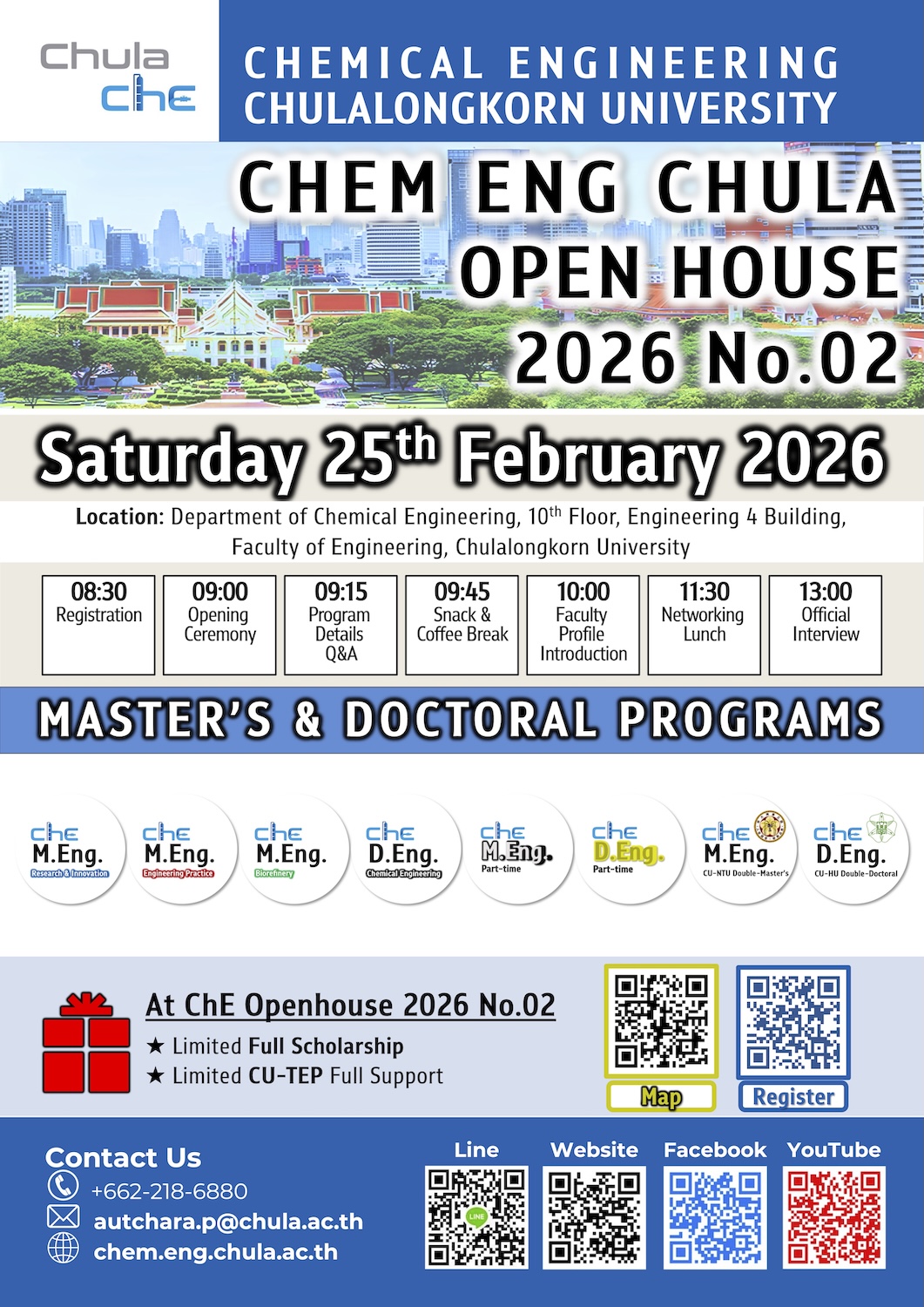 Thank you for expressing your interest in the Undergraduate and Graduate Programs in Chemical Engineering at Chulalongkorn University. The Department of Chemical Engineering at Chulalongkorn University stands as a dynamic and influential entity at the forefront of advancements in chemical engineering technologies within the region. Our faculty comprises dedicated professionals actively engaged in pioneering academic pursuits in chemical engineering, as well as providing valuable support to various industries in Thailand.